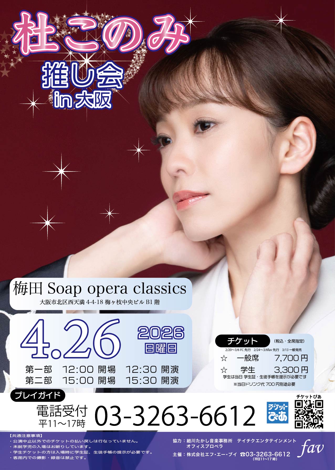 チケット:一般席 7,700円 学生3,300円(学生は当日身分証明提示)